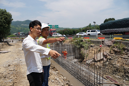 烈日炎炎,在黃土嶺隧道現場,工程養護部人員拿著卷尺仔細測量,做好數據記錄,并查看分析路段中一些破損的部位,一個來回下來汗已濕透衣背。隨后,一行人趕往臺州南收費所鋼結構施工現場,查看施工進展情況,要求施工單位緊盯合同工期,加強施工管理,同時一再強調施工中要做好防暑降溫工作,避開高溫時間段施工,注重高溫作業安全。