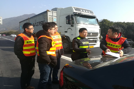 圖為工程養(yǎng)護部人員與設(shè)計方進行路面實地調(diào)查探討