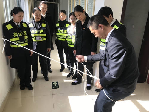 整個演練過程中,培訓人員詳細講解了打繩結的方法與注意要點,現場氣氛踴躍。通過開展此次活動,本所員工不僅掌握了逃生繩的使用方法,提高了高層逃生自救能力,而且進一步提高了面對突發火情的應對能力,增強了“防火防災”的安全意識。