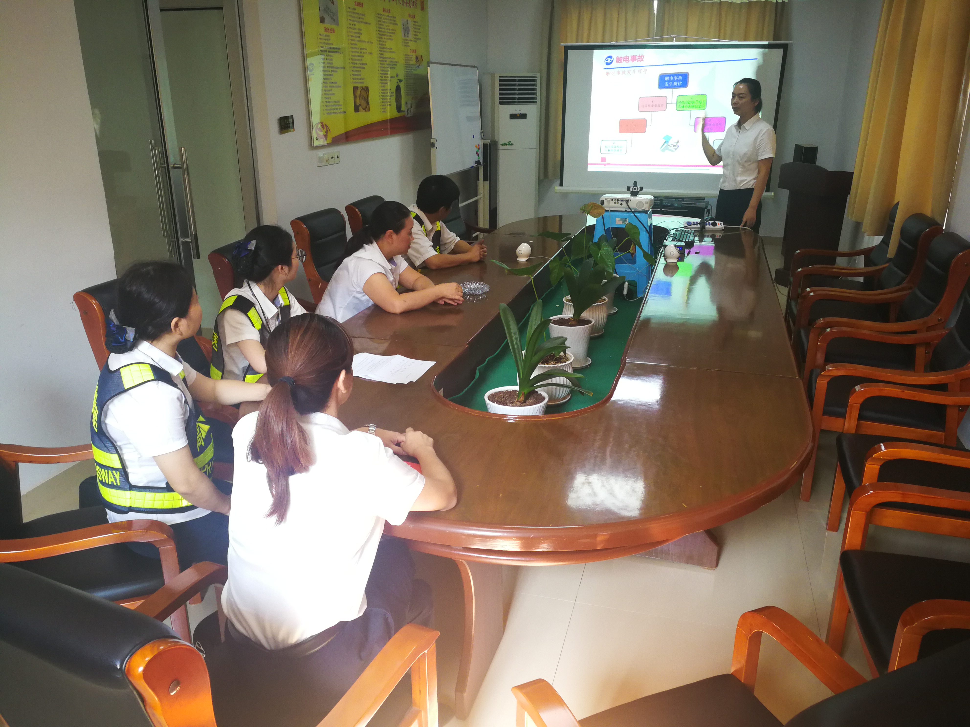 圖為培訓現場 夏季是事故多發季,高溫天氣多變,增加了環境的不確定因素,給生產帶來了一定的安全隱患。本次臨海南收費所主要從夏季多發的觸電、雷電、中毒和中暑等方面來講解安全生產。
