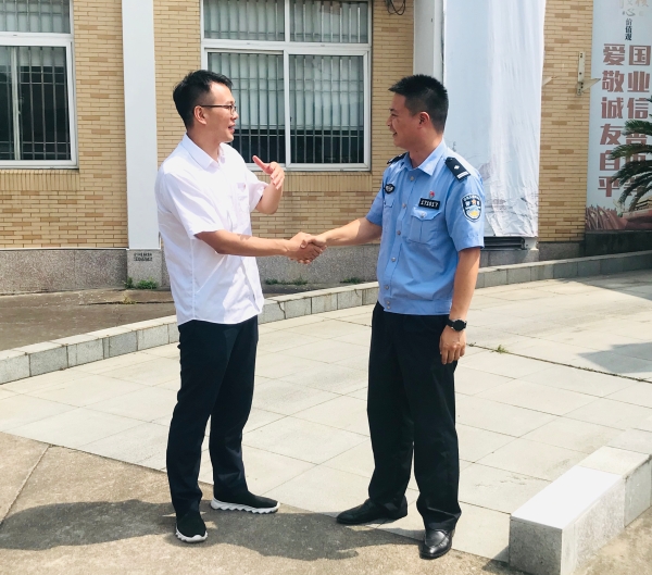 炎炎夏日送清涼 警民合作一家親 7月15日上午,臨海南收費(fèi)所所長孫明偉帶隊(duì)到沿江派出所送清涼,向堅(jiān)守一線的民警們送上誠摯的關(guān)懷,感謝他們對(duì)臨海南高速公路所做的貢獻(xiàn)。