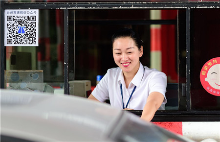 圖為收費(fèi)員文明收費(fèi)現(xiàn)場