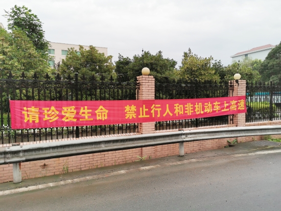 圖為高速入口處安全提醒橫幅