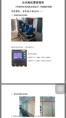 每一位參加學習的人在金小斌的指導下,對整個自發電流程從頭到尾進行了一遍演練,以便掌握基本要領。同時,該所還為員工以圖文并茂的形式準備了停電時發電機啟動和未啟動的兩套操作流程,對每一個操作步驟都作了詳細的注解,清晰明了,簡單易懂。