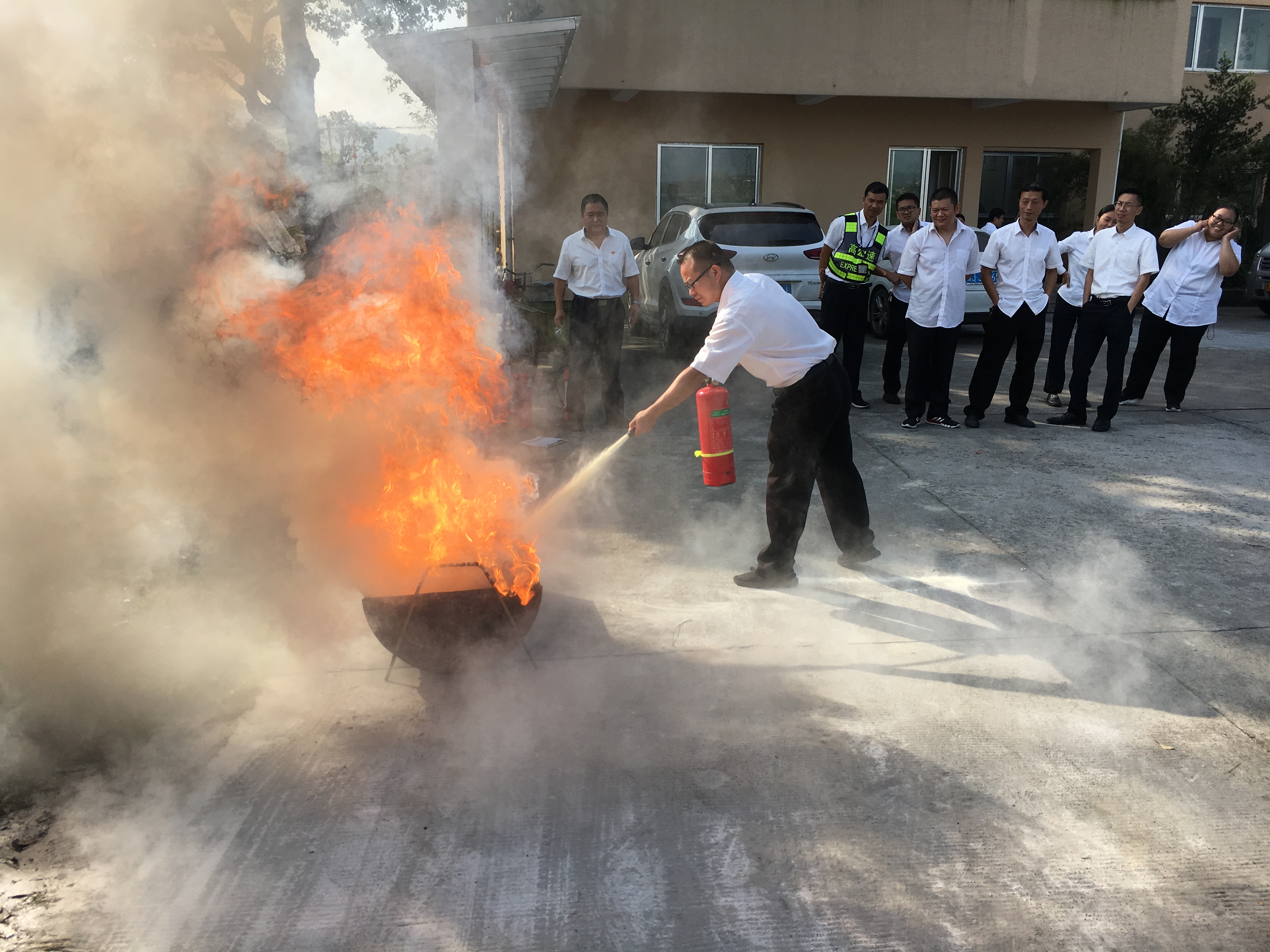 圖為演練現場 在接下去的滅火演練中,班長先行滅火示范,參加活動的員工逐個參與實際操作,所里的安全員在一旁進行指導、糾正,保證更有效地發揮消防器材的作用。 此次培訓進一步鞏固了員工的消防常識,提升了安全意識及碰到火災時的應急處置能力,培養“防火安全無小事,時時處處需留心”的好習慣,更好地保障工作、生活環境的安全。 夏蓮萍