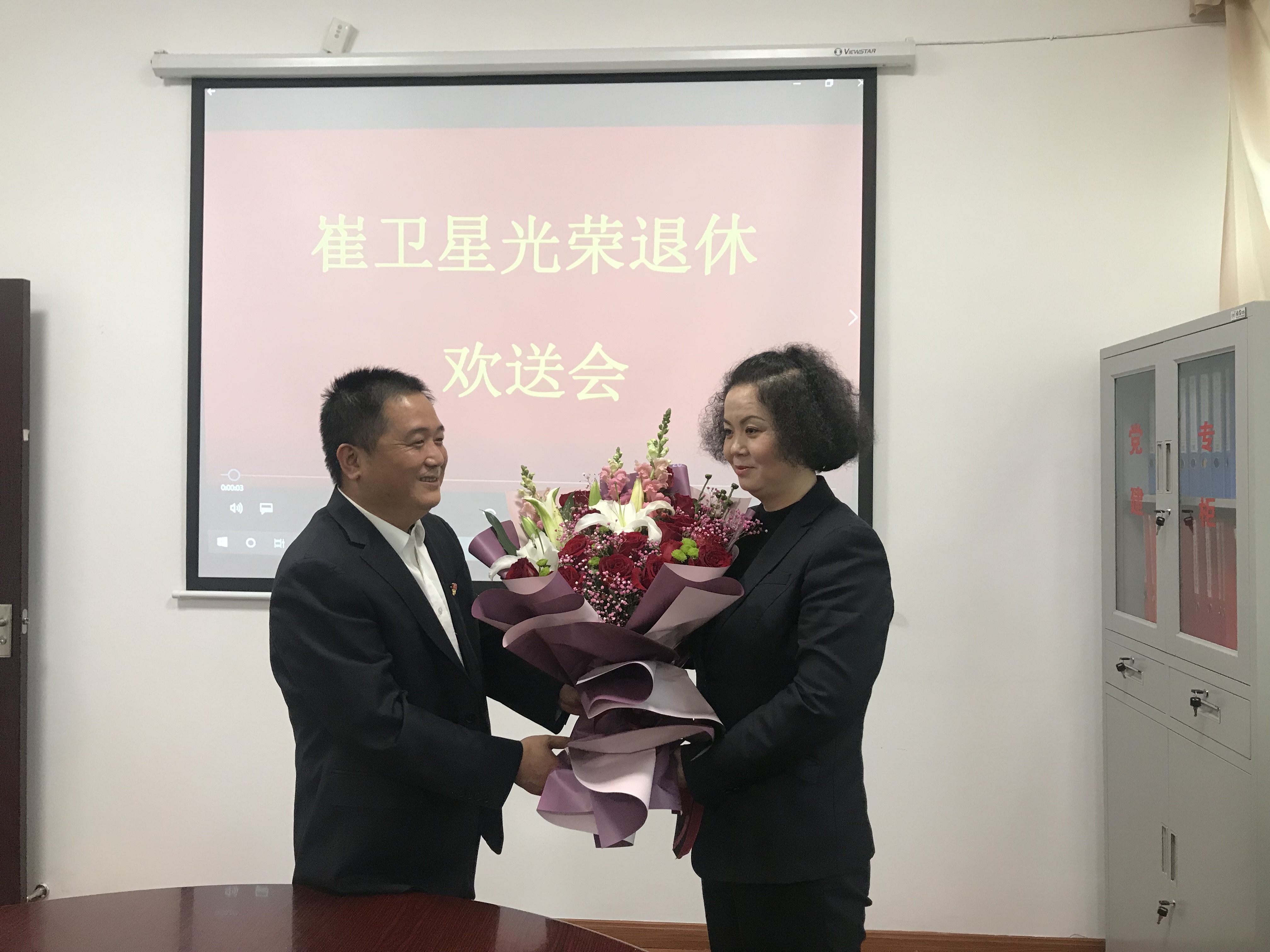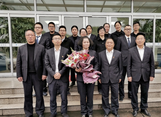圖為所長(zhǎng)王益民為退休員工送上鮮花