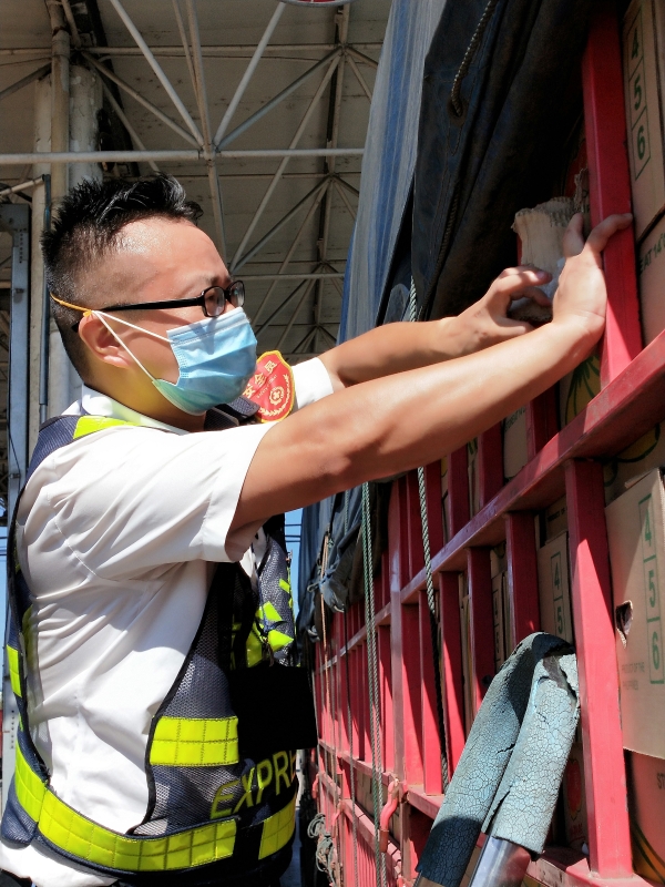 檢查綠農(nóng)車,遇到攀爬驗貨時,車輛欄桿因高溫炙烤至少在四五十度以上,臺州南收費所班長周冬子笑著說:“現(xiàn)在的車欄桿都‘辣手’了,腳底板也像踩了‘風(fēng)火輪’。” 話音還未落,只見他蹭蹭幾下,已然爬上貨車,一邊檢查貨物一邊用袖子蹭掉臉上豆大的汗珠,被曬得黝黑發(fā)紅的皮膚在烈日下格外醒目。綠農(nóng)車開走后,他顧不上滿身汗水,拿起了掃把開始打掃灑落在車道上的綠農(nóng)產(chǎn)品。因為他知道,這些灑落的農(nóng)產(chǎn)品,如不及時清理,在太陽曝曬后將會更加刺鼻,影響收費站的形象。 熱浪滾滾,卷不走收費員們工作的熱情;夏日炎炎,燃不盡收費員們堅守的意志。他們用執(zhí)著在高溫下書寫愛崗敬業(yè),用責(zé)任和擔(dān)當(dāng)保障著高速的平安暢通。 項丹穎