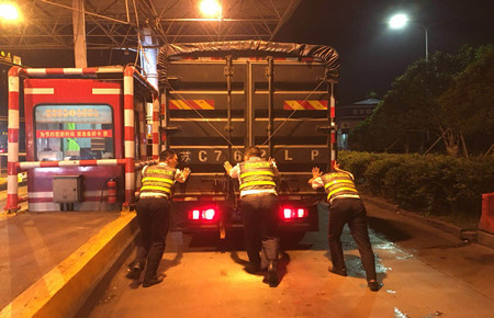 4月28日晚,夜幕降臨,車道上的車輛逐漸減少,溫嶺西收費所的當班工作人員有條不紊地堅守著各自的崗位,一號綠農車道上最為忙碌,拍照、檢查、收繳、放行…… “吱——”一陣急促的剎車聲忽然劃破了原本的靜謐。“晚上好。”來了一輛運輸蔬菜的大貨車。收費員和旁站人員照例認真核查了該貨車后,正準備放行時,車子卻瞬間發動不了。下車一查發現是氣壓系統無法壓縮儲氣,司機師傅一時急得團團轉。工作人員一邊安撫并建議他,先試試能否自行修理,一邊快速跑到車道上指引后方車輛從其他車道通行,防止發生堵車。 大約過了五六分鐘,司機向收費員求助道:“我修不了,停在這里也不行,附近又沒有拖車和修理廠,可怎么辦呀?”他無奈又焦急地望著車子。 “師傅您先別著急,要不我們幫您把車先推出車道,然后再想辦法聯系修理人員好嗎?”
