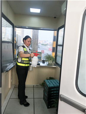 可如何有效除味又成了一個大問題,有員工提出用空氣清新劑,但空氣清新劑一般是有香味,香臭相結合會更加讓人受不了……大伙兒左思右想還是沒有一個可以一直拍板的好辦法。這時,所長楊瑩瑩想出來一個好法子——用白醋加水混合,每天堅持噴灑,再加上開窗通風,既可以除去臭味,又方便實惠。這個建議得到了大家的一致贊同,于是立即分頭行動,擼起袖子加油干,倒醋、配水,向新崗亭出發。也許這不是一時三刻就可以解決的問題,但是瞬間,每個人心里都感到一陣欣慰。