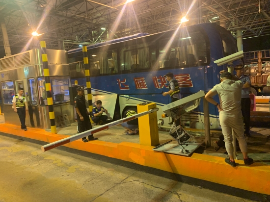 8月27日晚上10點左右,一輛車牌號為皖D31920的客車因放置行李的側門沒關上,從而導致在過ETC時將報價器攝像頭等重要設備損壞,造成交通堵塞。高速工作人員高效處理,在短時間內恢復交通