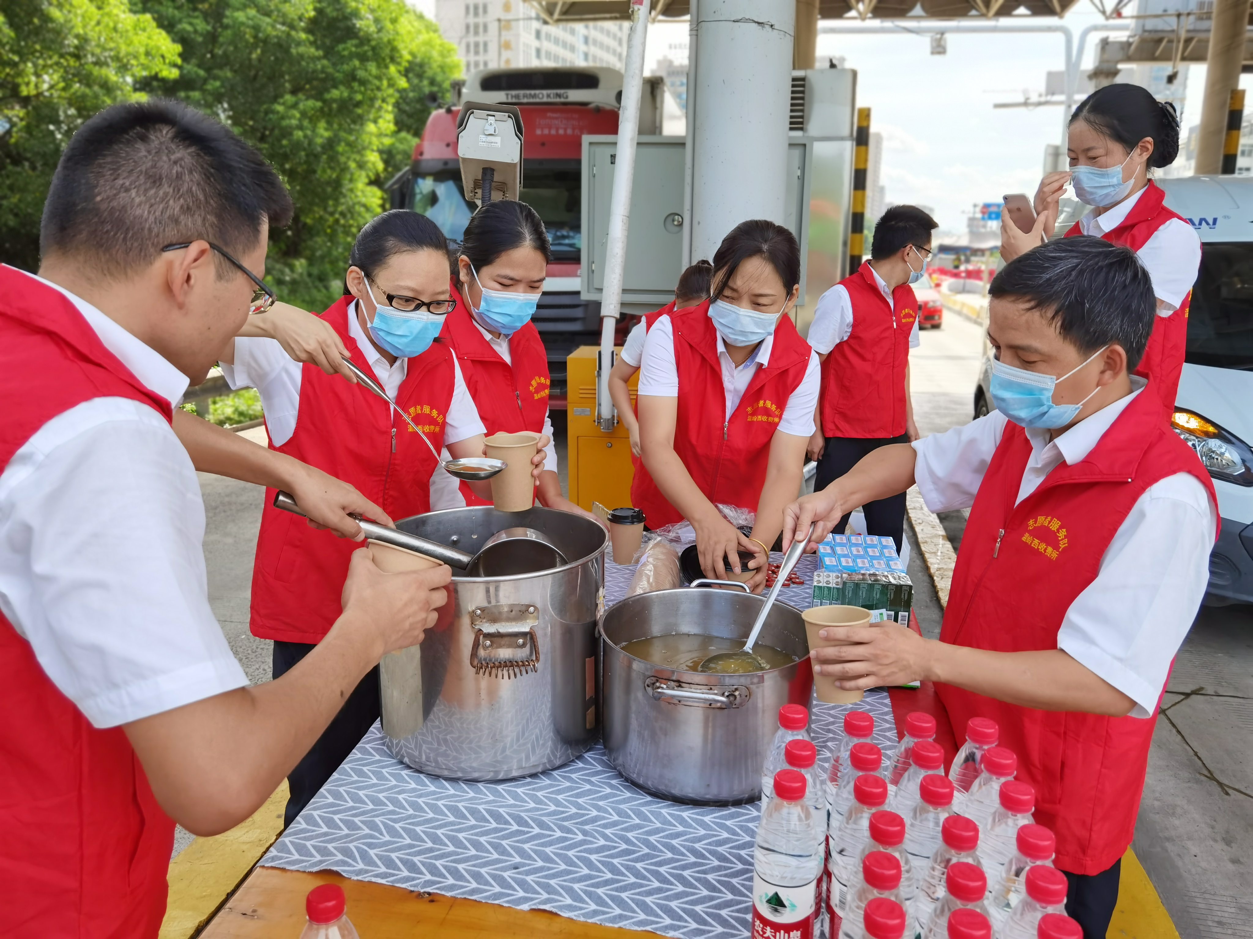 “趕了這么久的路,在車上的確又熱又累,一下高速就有清涼的東西送到手上,疲勞一下都煙消云散了,為你們的服務點贊!”一位外地貨車司機笑著說。