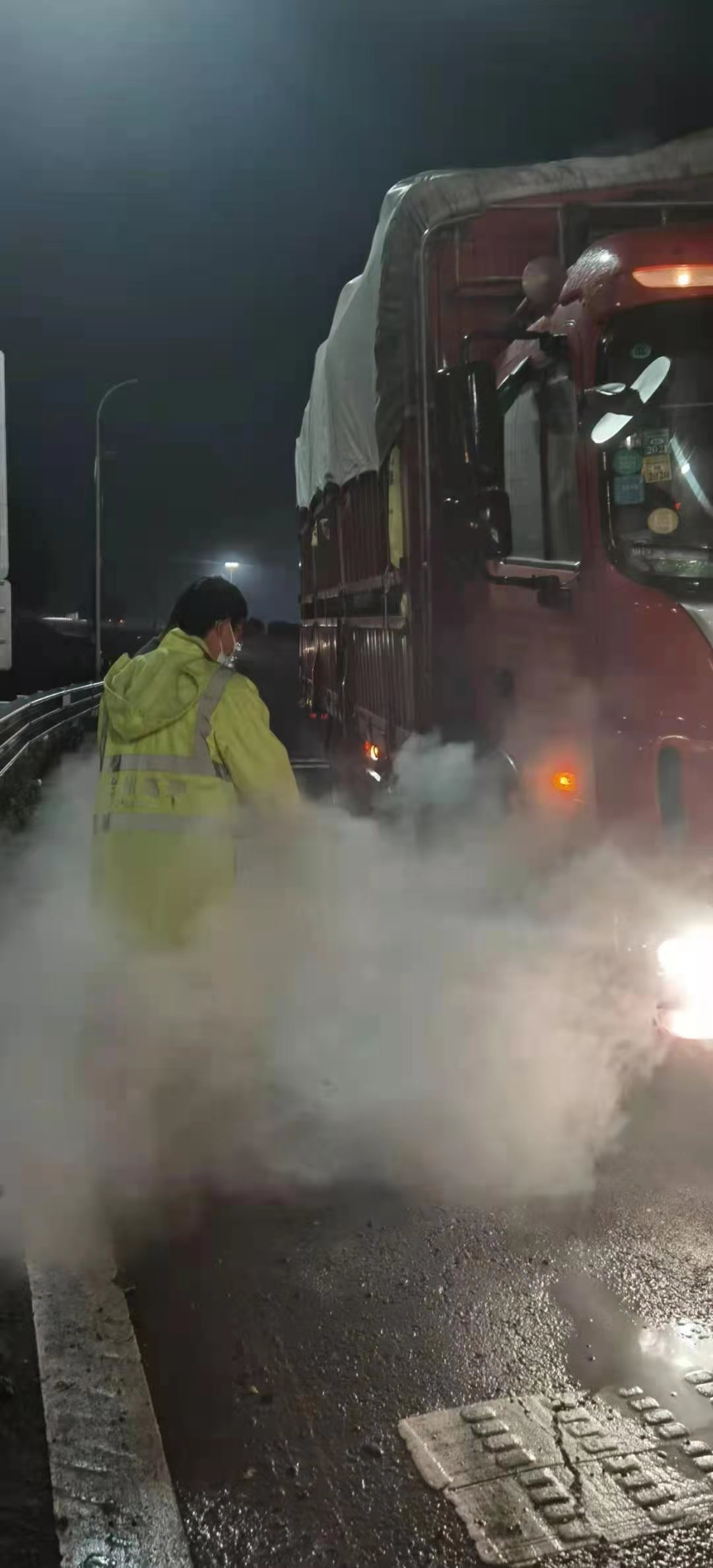 在連續使用了2個滅火器后終于將火徹底撲滅,可在現場檢查輪胎后發現輪胎還是異常高溫,無法確保不發生第二次著火的可能,鄭星又拉來水管對起火的車胎進行二次降溫,在鄭星的有序組織和收費員的全力搶救下,經過半個多小時的緊張施救,輪胎的高溫逐漸下降,濃煙和異味也慢慢消失,貨車師傅也從緊張慌亂中慢慢平靜下來,并連聲道謝。