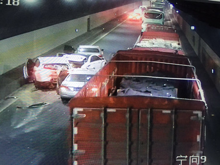 12月22日下午3:00,黃土嶺寧向隧道出口外,因兩輛大貨司機在行駛途中產(chǎn)生摩擦,不顧他人安危在川流不息的高速車道上大打出手,其中一名司機還在車道上逼停另外一輛大貨車,造成后續(xù)車輛被堵在隧道內(nèi),間接導(dǎo)致四輛轎車追尾。