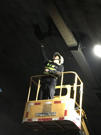 此次清洗工作,隧道所組織了兩個(gè)執(zhí)勤隊(duì),分別對(duì)隧道內(nèi)的監(jiān)控?cái)z像頭、照明燈、標(biāo)志燈進(jìn)行清洗和維修保養(yǎng),匯通養(yǎng)護(hù)公司負(fù)責(zé)隧道壁、各類(lèi)標(biāo)志牌等方面的清洗。此外,隧道所還組織專(zhuān)人對(duì)隧道內(nèi)消防設(shè)備進(jìn)行檢查登記,全面摸排設(shè)備狀況,維修存在安全隱患的設(shè)備設(shè)施。