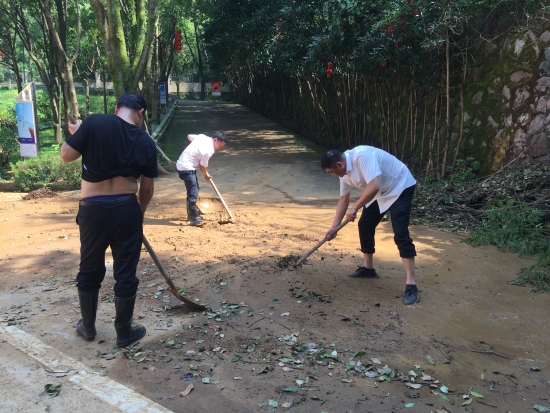 臺風(fēng)“利奇馬”肆虐而過,雖然黃土嶺隧道所提前做好各項防臺措施,但是干凈整潔的管理所在這場天災(zāi)中還是遭受到了破壞,樹木倒折、落葉、樹枝滿地,淤泥坑洼,現(xiàn)場一片狼藉。8月12日上午剛剛恢復(fù)正常供水的黃土嶺隧道所,全體人員立馬投入到重建家園中,打掃衛(wèi)生,原地種回倒伏的樹木,清理淤泥……徹底消除臺風(fēng)過后留下的殘敗痕跡。