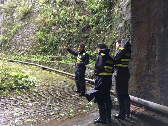一大早,徹夜未眠的所負(fù)責(zé)人、執(zhí)勤隊員又開始緊張忙碌:巡查斜井、邊坡、山體、邊溝部位;檢查南北配電房漏水情況,確保臨時用電安全;查看所轄路段警示牌倒塌或受損情況;及時補充抽水泵等應(yīng)急物資,增加豎井排水設(shè)備,提高排水能力,預(yù)防隧道內(nèi)出現(xiàn)雨水倒灌現(xiàn)象;給停電停水的馬宗嶺隧道人員送去糧食和飲用水等物資,做好后勤保障。