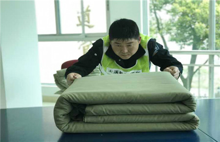 大溪嶺隧道所開展了內(nèi)務(wù)整治疊被競(jìng)賽。比賽要求是在規(guī)定的5分鐘時(shí)間內(nèi)將被子壓平壓實(shí),捏出被子的棱角,疊成形。隨著裁判員的一聲令下,隊(duì)員們立馬進(jìn)入狀態(tài),迅速將被子展開,對(duì)折,壓平,切槽,起角……一步一步地整理,時(shí)間一分一秒地過(guò)去,他們鎮(zhèn)定自若,嫻熟地動(dòng)作,熟練的技巧,將散亂的被子變成方方正正的“豆腐塊”。有些隊(duì)員甚至用了二三分鐘就疊好了。內(nèi)務(wù)整治包括疊被都是隧道所正規(guī)化整治的一部分內(nèi)容,長(zhǎng)期堅(jiān)持的良好習(xí)慣讓員工養(yǎng)成了嚴(yán)謹(jǐn)?shù)纳钭黠L(fēng),保持了宿舍內(nèi)務(wù)衛(wèi)生的整齊劃一。