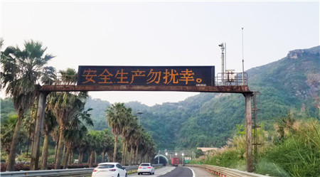 圖為情報板滾動播放安全標(biāo)語 會議要求在隧道管理所醒目位置懸掛了安全條幅,情報板滾動播放安全標(biāo)語,提示過往的司機朋友安全出行。同時在隧道所管理上増設(shè)安全員崗位,要求安全員嚴(yán)格遵循崗位職責(zé),并做好日常巡查記錄表。執(zhí)勤隊長上崗要帶紅章,既能體現(xiàn)安全員的責(zé)任感,又能讓員工看到起警示作用,讓大家時刻拉緊安全這根弦。會后,工作人員按照會議部署立即行動落實。