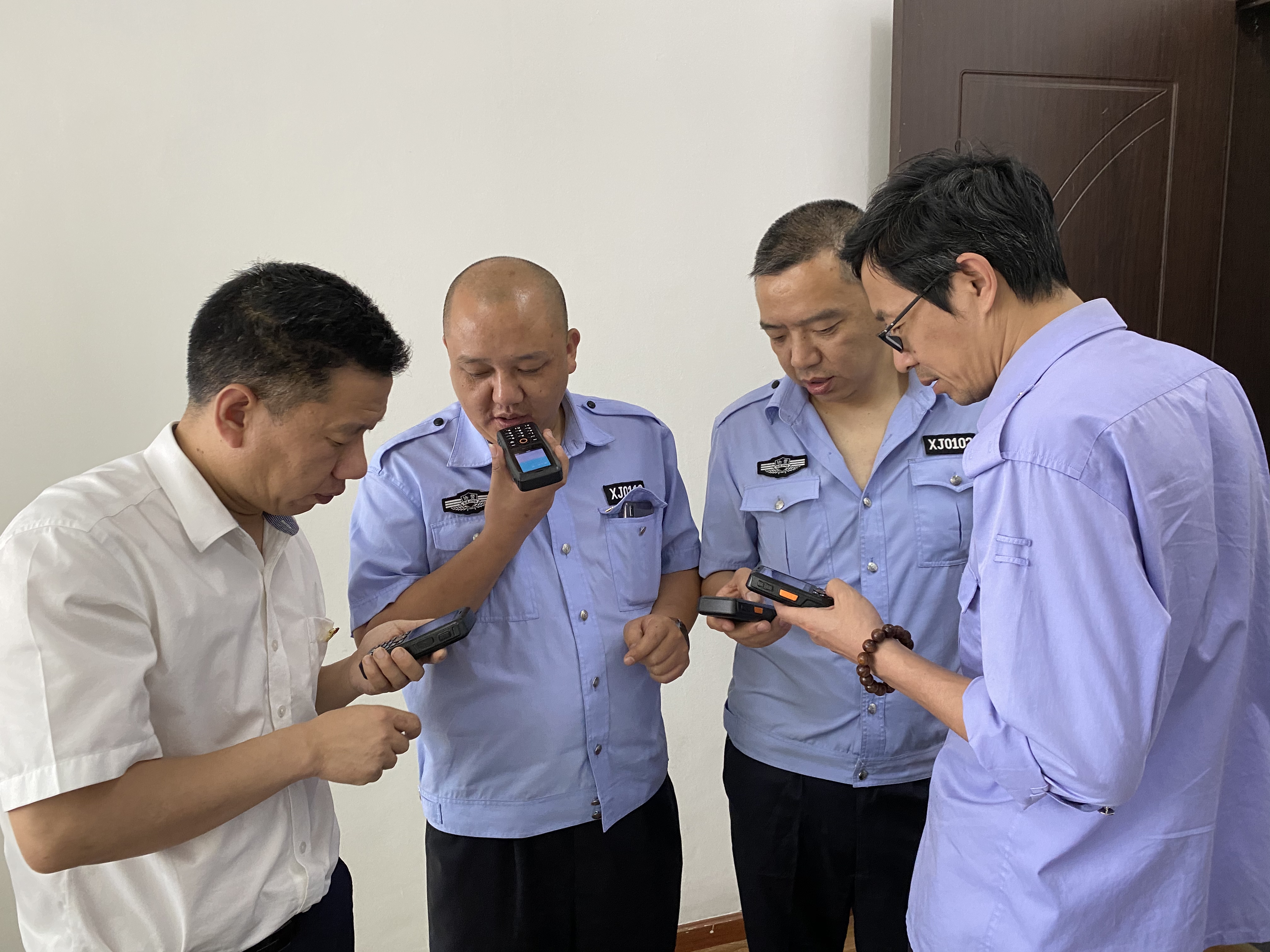 圖為廠家人員前來安裝對講機 當日下午,為了讓執勤隊員快速熟悉手機對講機的使用和管理,切實發揮對講機在實際工作中的作用,兩隧道所立即組織當班隊員集中培訓。大家認真地學習對講機的操作規范,相互研討對講機的特點,一邊操作示范,一邊了解屬性,以便更快掌握。