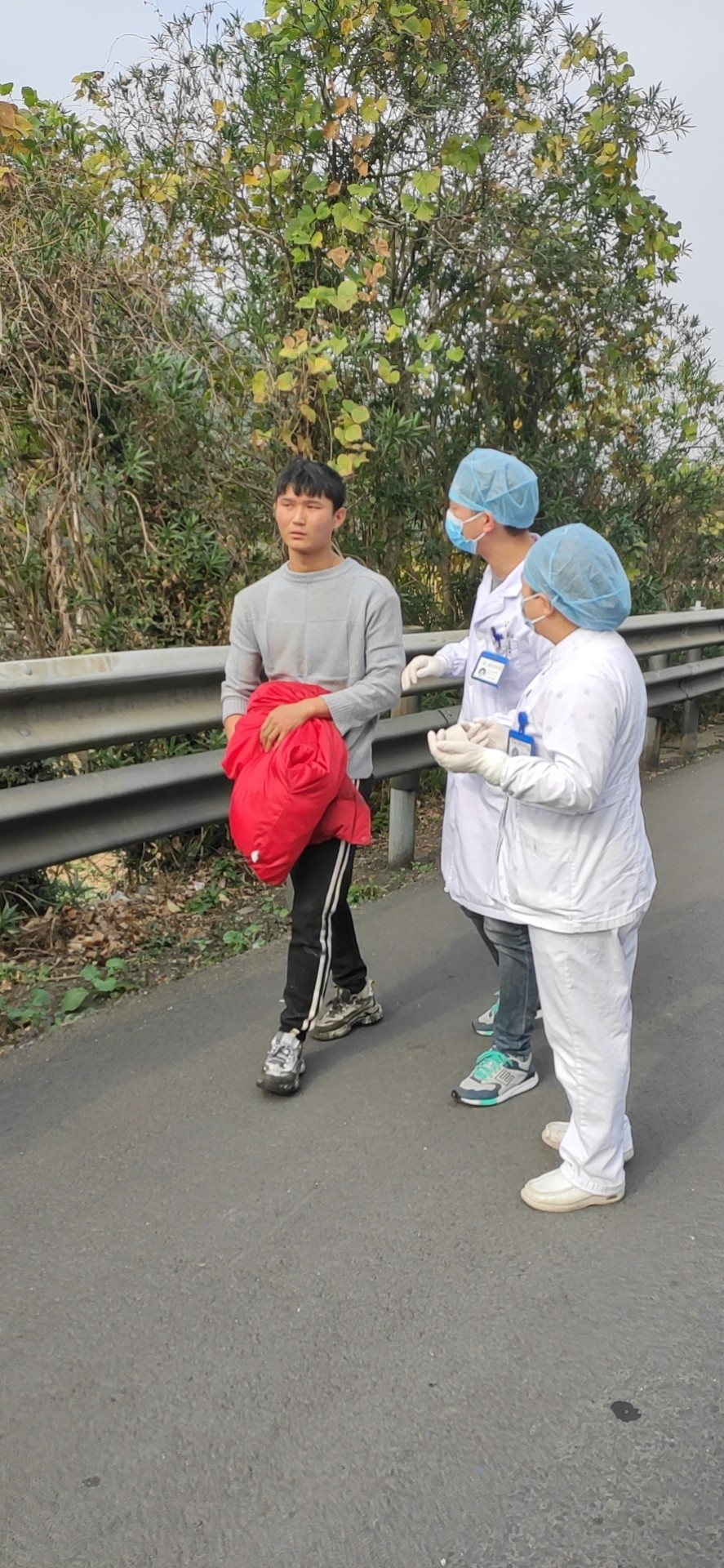 12月13日12:48中控發(fā)現(xiàn)溫向隧道入洞口600米處的情報板下濃煙滾滾,中控切換火災圖像至監(jiān)控中心。并啟動火災報警系統(tǒng),按下火災按鈕,由于著火點距離隧道北廣場最近的消火栓有500百米,隊員們出警時從倉庫里取出數(shù)只滅火器,由于車輛未實施封道,車輛一直在事故車旁邊呼嘯而過,給現(xiàn)場救援帶來難度,王宇鵬、湯寧光、陳幸?guī)е鴾缁鹌黠w奔去滅火,巡邏車準備駛?cè)胧鹿受嚭筮M行封道預警。