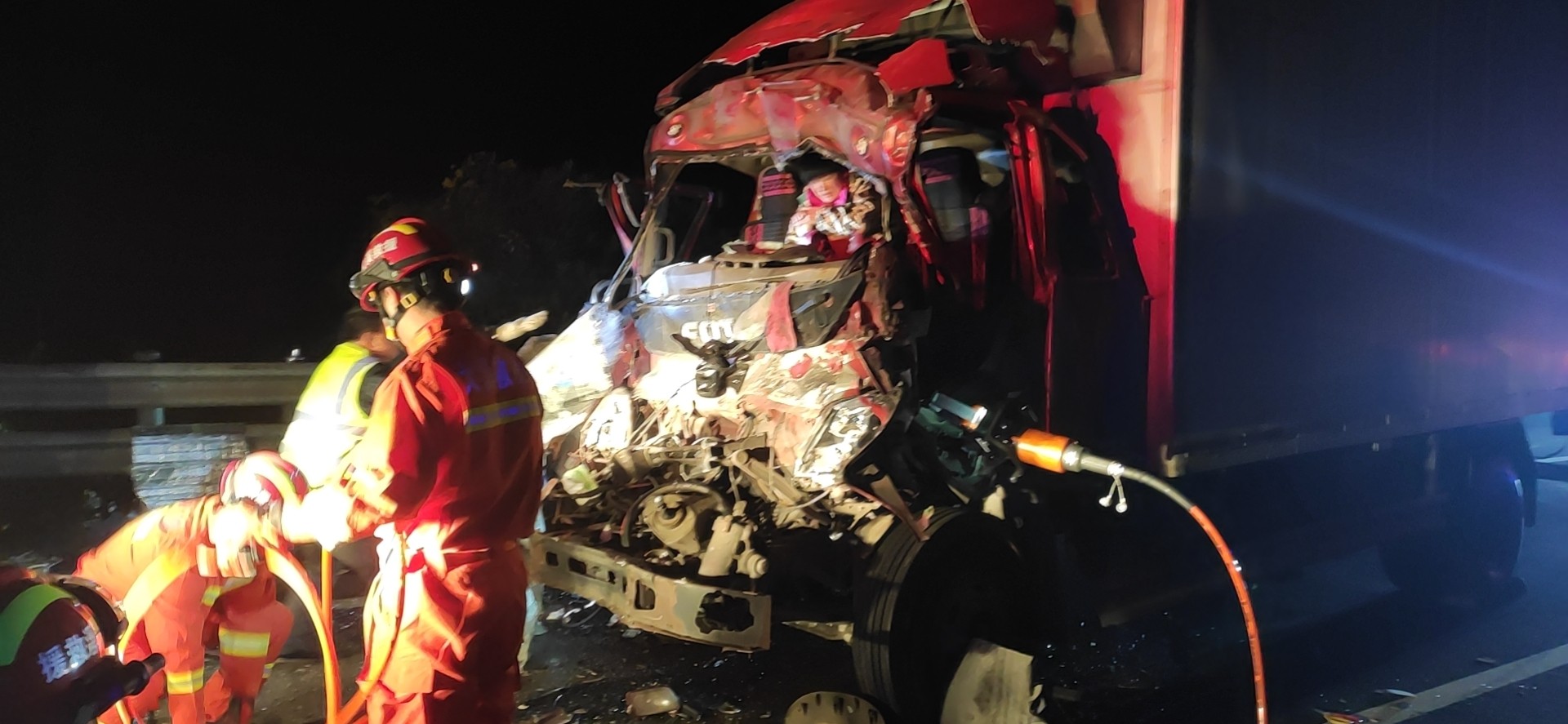 距大溪嶺溫向隧道入口1KM處發生貨車追尾事故