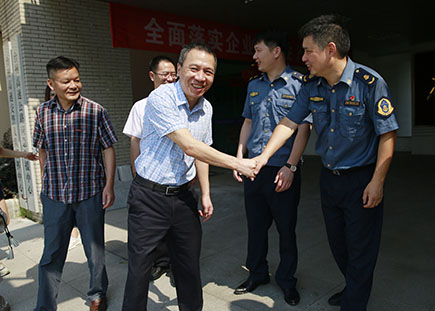 圖為公司副董事長、總經理張建平檢查收費所食堂 “今天車流量多嗎?你們是公司形象的代表,請把最優質的服務提供給他們。”在臺州收費所一號崗亭里,張建平一邊慰問當班收費員,囑咐他們注意安全和休息,一邊鼓勵他們堅持做好文明服務。他還到黃土嶺隧道所、臨海南收費所慰問當班執勤隊員和收費員。此時,各所食堂管理房正處于改造階段,他仔細查看了各所食堂和工作場所,了解大家的飲食和工作環境。