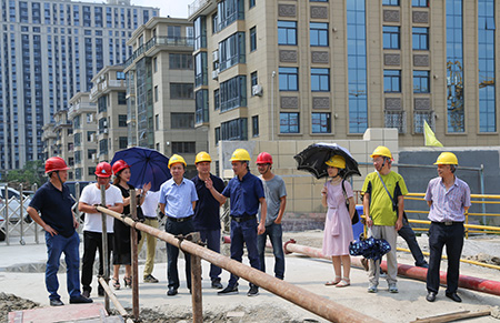 圖為集團副董事長、總經理張建平在文鼎苑項目工地了解工程進度情況