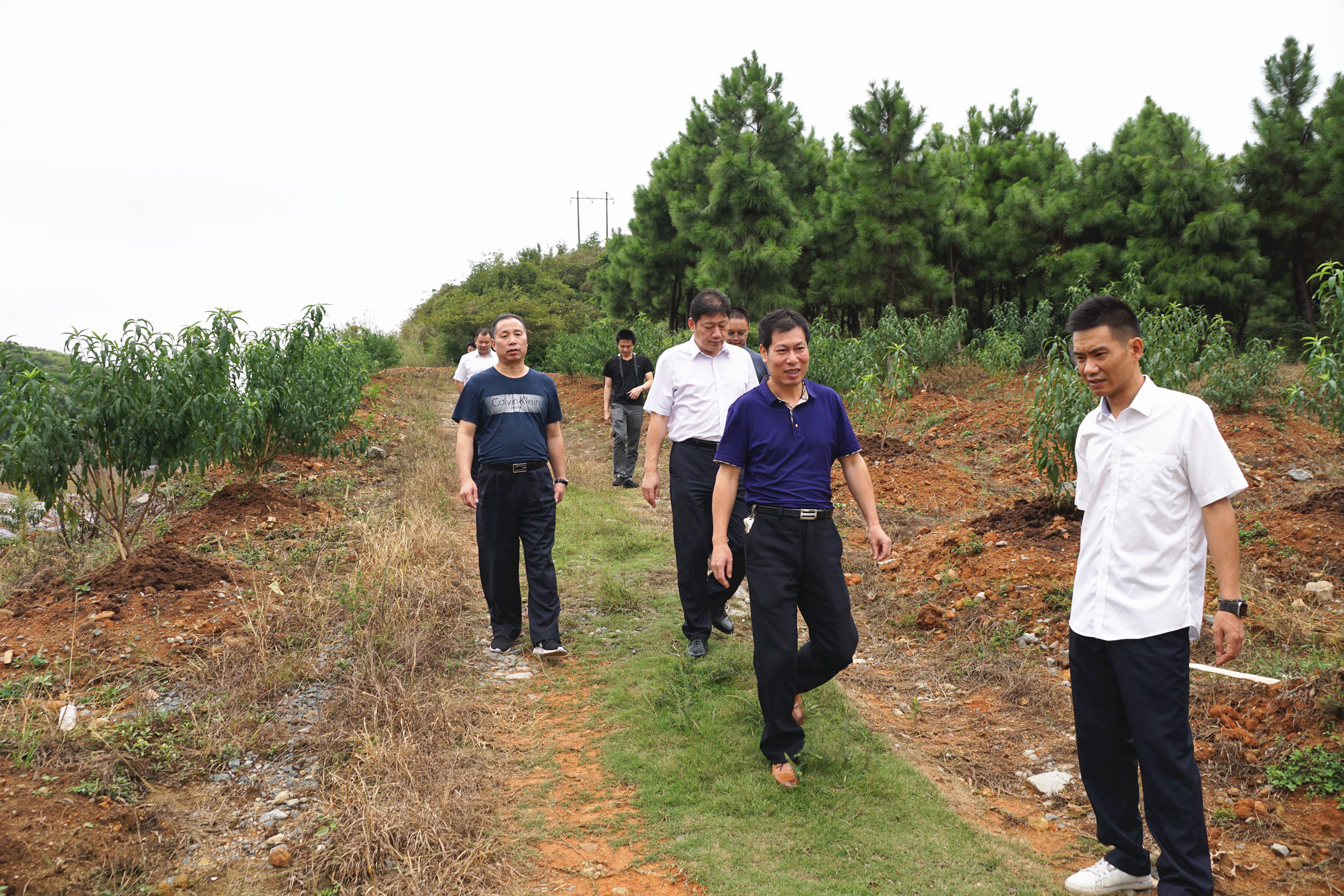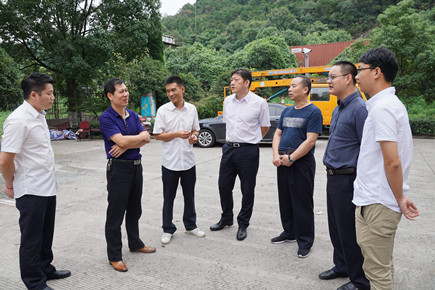 圖為集團總工程師江輝帶隊到大溪嶺山頂檢查