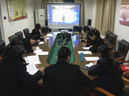 圖為臨海南收費所非當班員工通過遠程視頻會議系統同步學習