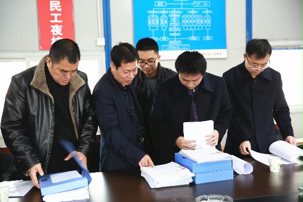 圖為集團總工程師江輝在檢查安全臺賬