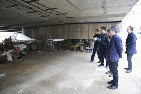 圖為集團副董事長、總經(jīng)理張建平在院橋互通下檢查