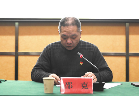 圖為集團(tuán)監(jiān)察室負(fù)責(zé)人傳達(dá)文件現(xiàn)場(chǎng)