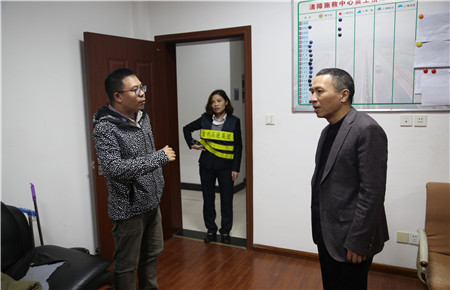 圖為張建平夜聽取施工進(jìn)展匯報