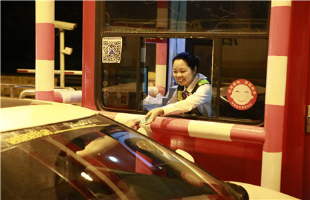 圖為收費(fèi)員為司乘人員提供文明服務(wù)