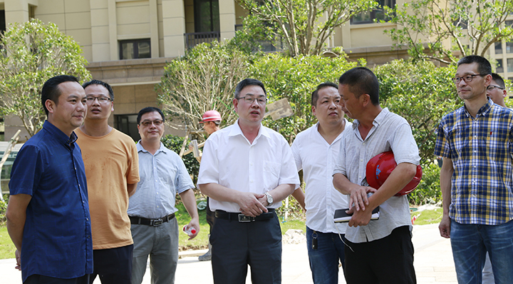 圖為陳文波在黃巖玖璽逸墅項目工地檢查臺風過后工地情況 8月12日,陳文波在羅小將的陪同下,趕往椒江文鼎苑、黃巖玖璽逸墅項目施工現場,檢查指導臺風過后工地復工準備工作。陳文波要求房產集團和施工單位要及時清溝排水、清理垃圾,抓緊修復損壞的物件設施,同時做好衛生防疫。所有人無論何時都要把安全作為頭等大事來抓,仔細檢查電力設施等不容易發現的險患,防止次生災害的發生,搶時間,抓復工,把臺損降到最低限度。 高速房產集團此前由于防臺措施得力,在臺風過后又立即組織開展生產自救,使得在建項目沒有造成較大損失。陳文波對房產集團和施工單位的抗臺工作給予充分肯定。