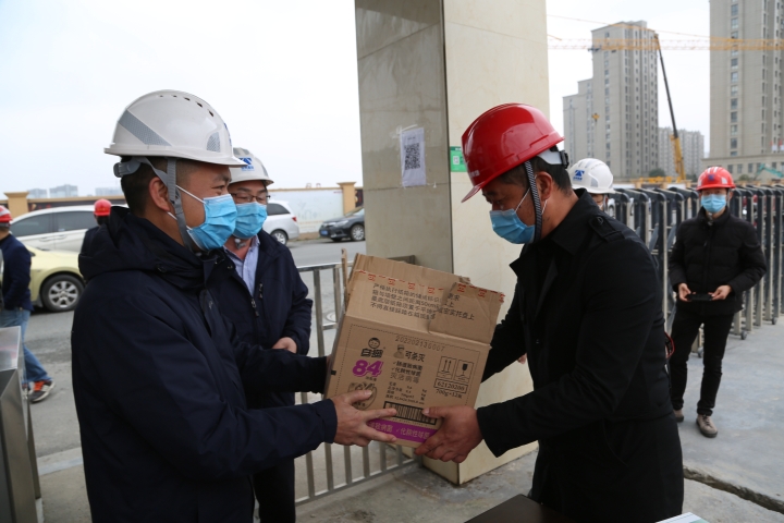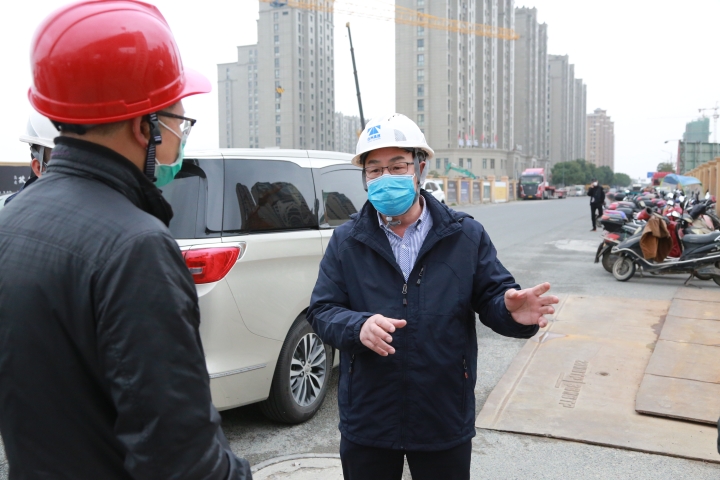 公司下屬的房產集團作為勞動密集型,同時又是對工期最敏感的企業,防疫和復工壓力重大。陳文波非常重視這項工作,2月27日,在集團黨委委員、副總經理羅小將的陪同下,檢查房產集團防疫工作及復工進展情況。
