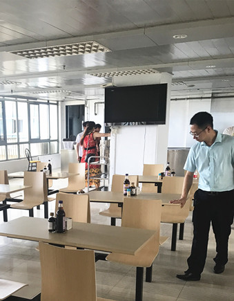 圖為公司副總經(jīng)理董阿林于7月1日到大樓檢查指導(dǎo)食堂整改情況