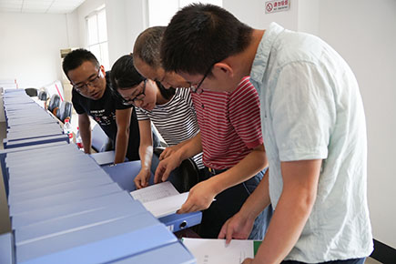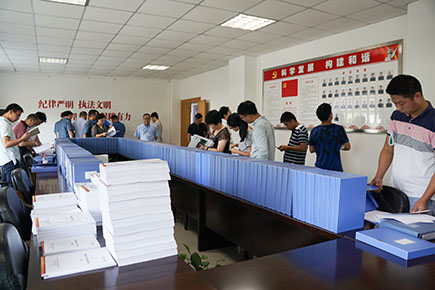 圖為省公路局檢查組檢查內(nèi)頁資料現(xiàn)場