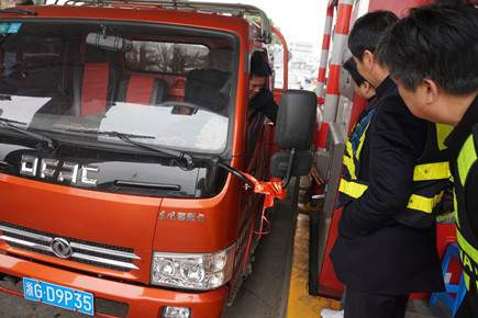 圖為集團總工程師江輝現場了解自助發卡機使用情況 江輝一行首先來到臺州收費站,查看ETC高清抓拍及內外廣場攝像頭安裝情況,對現場安裝人員近階段不顧嚴寒天氣,奮力搶修的積極工作態度表示感謝,并一再叮囑趕工的同時要做好自身的抗寒保暖。江輝還在現場咨詢了解該收費站兩臺自助發卡機運行情況,并親自對司乘人員取卡等使用流程進行規范化指導。