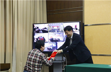 圖為集團(tuán)副總經(jīng)理陳保衛(wèi)為“2017年全市交通建設(shè)先進(jìn)個(gè)人”何翔頒獎(jiǎng)