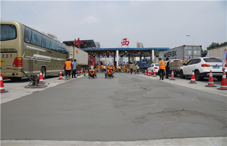 近日,隨著混凝土養(yǎng)護(hù)的結(jié)束,溫嶺西收費(fèi)站車道維修工程圓滿完工,收費(fèi)車道恢復(fù)正常通行。此次工程對溫嶺西收費(fèi)站第四、五車道進(jìn)行了徹底維修,包括挖除原車道破損路面、注漿、安放鋼筋網(wǎng)、澆筑混凝土、混凝土養(yǎng)護(hù)、標(biāo)線恢復(fù)等工序。