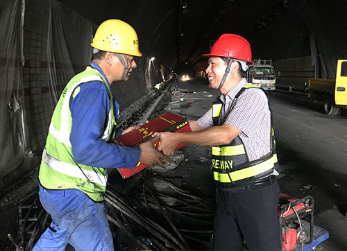 8月20日,已經是三伏天的尾聲了,雖然經過連續多個臺風的洗禮,然而天氣依然炎熱。集團總工程師江輝心系一線,在工程部負責人的陪同下,深入大溪嶺-湖霧嶺隧道機電改造項目工地現場,慰問正在高溫中奮戰的一線施工人員。