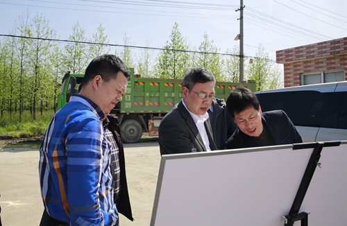 圖為公司領(lǐng)導(dǎo)陳文波在水花村考察停車區(qū)地塊