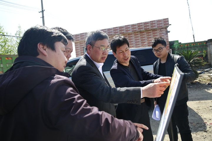 圖為公司領(lǐng)導(dǎo)陳文波在岙林村考察停車區(qū)地塊