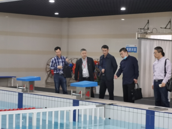 圖為王雍一行調(diào)研游泳館現(xiàn)場(chǎng)