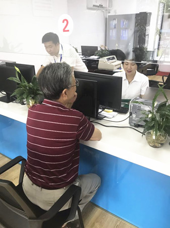 圖為在原椒江區(qū)府辦工作的科級(jí)老干部老趙辦理股權(quán)轉(zhuǎn)讓現(xiàn)場(chǎng)