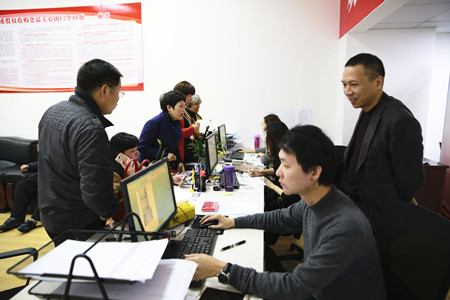 隨后,張建平又趕到股權椒江收購點。臨近傍晚,該收購點前來辦理的股東仍絡繹不絕,工作人員都顧不上和來此慰問的張建平介紹幾句,便轉頭專注地辦理起了轉讓手續……