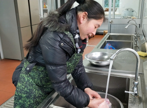 “之前,用水量緊張, 用水條件差,要拿勺子這么舀著洗,費時費力,現在終于不用再拿勺子盛水洗菜了,方便!”食堂阿姨笑瞇了眼。