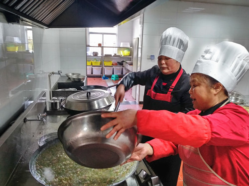 浸了一夜的早米,用石磨磨成米漿,細(xì)膩而幼滑,被靜置在盆里。“一般都用米粉泡水,口感粗糙,而且吃起來(lái)沒(méi)有香頭。”利花一邊說(shuō),一邊將香腸切碎與豆腐、冬筍、胡蘿卜、芹菜、香菇、蠶豆瓣翻炒著。旁邊的大鍋里,長(zhǎng)長(zhǎng)的豆面在骨頭湯里翻滾著,像一棵棵舞蹈的海草。徐徐倒入的米漿,被不停地?cái)嚢瑁耙钦车藉仯蜁?huì)有焦糊味,這鍋羹就算廢了。”米漿好像不夠,利花有些懊惱,“要是在家里,米漿都會(huì)多準(zhǔn)備一些,不夠就隨手添,我?guī)У竭@里就這些,也沒(méi)得加了。”就叫在一邊做幫手的妹妹寶花用面粉和山粉(也就是番薯粉)摻水拌起來(lái),倒入鍋里,湯漸漸濃稠起來(lái),倒入之前炒好的配料,加上切得細(xì)細(xì)的綠綠的芥菜梗、芥菜葉、海蠣,鍋里不時(shí)冒起大泡,香氣四溢。 為照顧吃不慣糟羹的同事,食堂還準(zhǔn)備了一鍋甜的山粉糊。來(lái)自臺(tái)州各縣市區(qū)的同事,按各自飲食習(xí)慣選擇了咸的或甜的。有說(shuō)芹菜的味道蓋過(guò)了芥菜清香的,有說(shuō)沒(méi)有加入芋頭口感不夠糊的,但撲鼻的香氣和濃厚豐富的口感立刻讓人忘了挑剔。對(duì)我來(lái)說(shuō),碧綠的芥菜葉和白胖的海蠣肉是整碗羹的顏值擔(dān)當(dāng)和靈魂所在。 每個(gè)元宵節(jié),對(duì)于在崗的同事們是沒(méi)有花燈可看、沒(méi)有燈謎可猜的,也不能與家人聚在一起吃羹。車道上此刻正是流量高峰期,大家匆匆吃完,都要趕著上崗。食堂大姐把多出的糟羹和山粉糊放進(jìn)蒸飯鍋保溫,叮囑大家下班后再來(lái)吃點(diǎn),這個(gè)吃了不扛餓。此時(shí),除了食物最能體現(xiàn)節(jié)日氣氛外,還有那一份特意為你留著的溫?zé)岣屓烁袆?dòng)。 鄭瑛芝