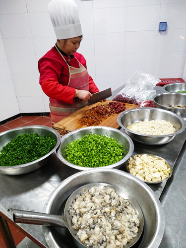 臺(tái)州的元宵節(jié)是從正月十四開始的。十四吃咸羹、十五吃甜的山粉糊。下午兩點(diǎn),臺(tái)州所的食堂大姐們就開始忙活了。 早在前幾天,來(lái)自臨海的食堂大姐利花,就開始為臺(tái)州所的元宵節(jié)準(zhǔn)備食材清單。在她的家鄉(xiāng)四岔,咸的糟羹里是要放海蠣的,她說(shuō)一到正月十四,滿街都會(huì)有剛從牡蠣殼里現(xiàn)挑出來(lái)閃著新鮮青色的海蠣肉賣,但在黃巖,找遍菜場(chǎng),只有冰凍的泛著白光的海蠣肉,也不是每天都有賣,有時(shí)還要靠運(yùn)氣才能買到。利花有些無(wú)奈,她想,都是離海不遠(yuǎn)的地方,為什么就沒(méi)有新鮮的海蠣?她也許不知道,在黃巖一帶,大家還是喜歡吃甜的山粉糊,所以不需要海蠣。